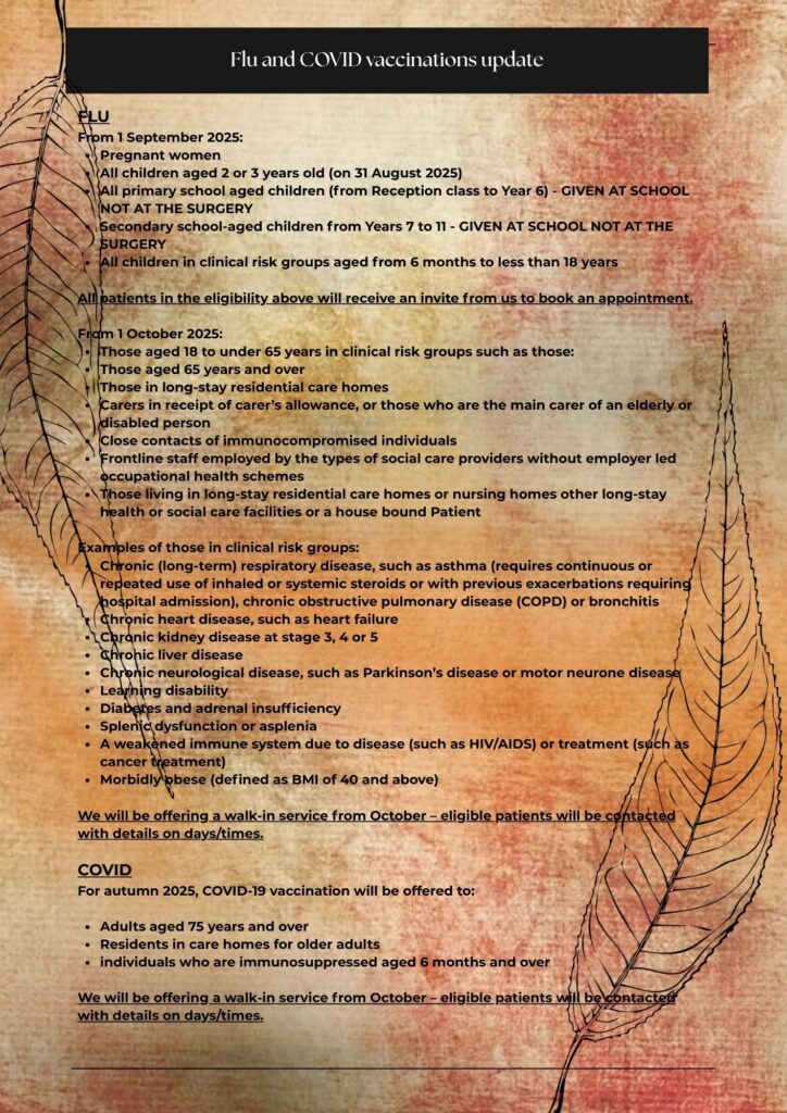 SEE LATEST NEWS FOR FLU AND COVID CLINICS, BOOKABLE APPTS AT ST JAMES FOR FLU ONLY